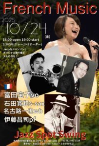椎名 豊(P) Max Ionata(Ts) Pat Glynn(B) 広瀬潤次(Ds) Special Guest: 加藤大智(AS) 18時半 オープン 19時半 スタート 一般予約6500円 学生予約 (テーブルチ […]