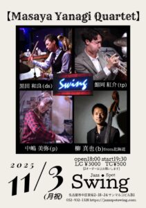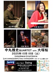 中丸雅史(P) 大塚桜(Vo) 長瀬良司(Tp) 川合進(B) 林宏樹 (Dr) 19時スタート