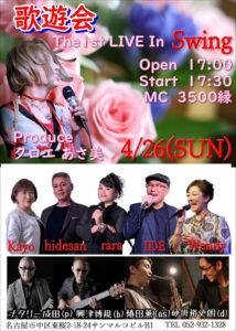 椿田薫(AS) ナタリー成田(P) 興津博規(EB) 砂掛裕史朗(Dr) 17時 OPEN 17時半 START