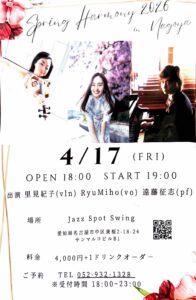 Ryu miho(Vo) 里見紀子(Vn) 19時スタート