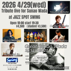 椎名 豊(P) Pierrick Pedron(AS) 篠原正樹(Tp) Pat Glynn(B) 広瀬潤次(Ds) Special Guest :加藤大智(AS) 18時半OPEN 19時半START 一般¥7,000 […]