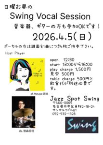 ホスト: Masaco西嶋(P) 笹森将稔(Dr) 参加演奏¥1,650(税込) 見学¥550(税込) 12時30分オープン 13時セッション!