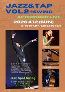 川鰭祐子(Vo/ Tap) 近藤有輝(P) 北川弘幸(B) スペシャルゲスト: サカイダコージ(Tap) 12時オープン 13時スタート ¥3,850(税込)