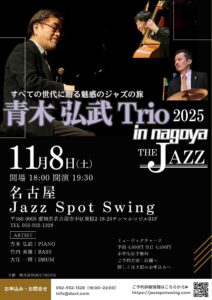祖田修(P) 萬恭隆(B) ウィラード・ダイソン(Dr) 予約4000円 当日4500円 18時半オープン