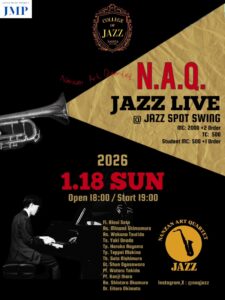 南山大学ジャズ研究部 N.A.Q Fl 佐藤里珠衣 As 下村未菜実 As 土田和佳奈 Ts 小野田悠貴 Tp 青山遥香 Tp 牧野鉄平 Tb 西村奏汰 Gt 小笠原隼 Pf 時田亘 Pf 伊原寛司 Ba 奥村慎太郎 D […]